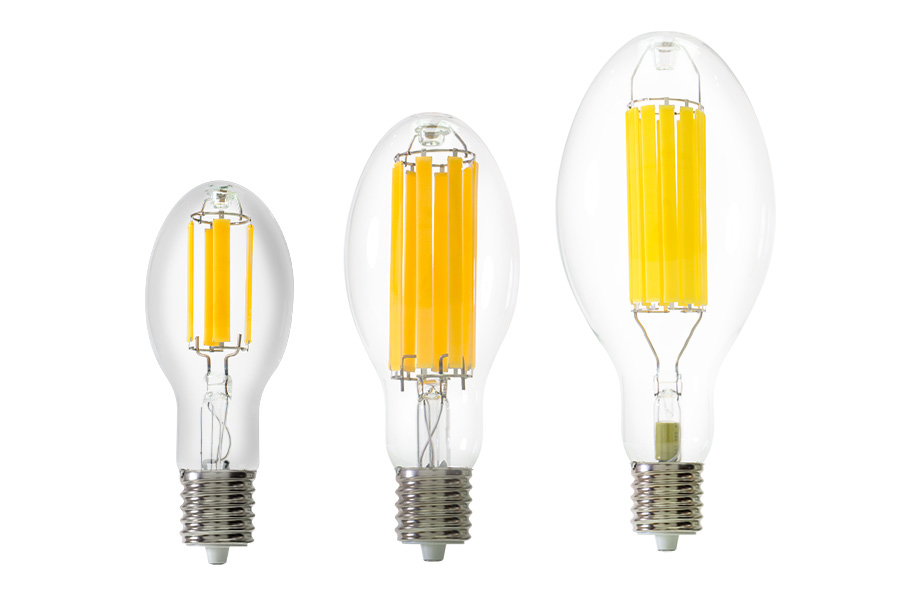 naturaLED® High Lumen Filament LED lamps replicate the traditional design of HID Metal Halide and High Pressure Sodium lamps while providing significant energy savings. Unlike Corn Cob Style LED Lamp, naturaLED® High Lumen Filament LED Lamps contain LED filament rods that are powered by using a glass insulated circuit, similar to traditional lamps. Our filament HID replacement lamps come in the traditional ED23, ED28, and ED37 shapes, perfect upgrade option for commercial applications including post tops, bollards, high bays and wall packs. The lamps are Ballast Bypass, Enclosed Fixture Rated, with 360° Omni Directional with Highest LPW (200LPW) backed by the best 5 year warranty in the market.